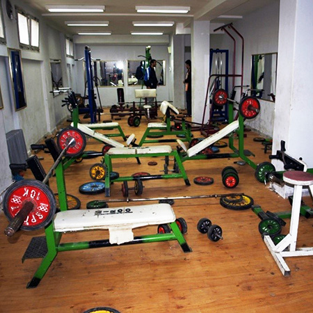 تجهیزات ورزشی: باسکول ، لاستیک وزنهبرداری 80×100 3عدد، پرس پا خوابیده، پرس پا اسیتاده،پرس سینه خوابیده 4عدد، پرس سینه شیب دار 3عدد، پرس سینه نشسته، سیم کش چندمنظوره، پرس سینه مارپیچ ترانس خم، جلو بازو نشسته، پرس قایقی، پرس سینه شیب دار برعکس، نردبان اسکات، دوقلو ، تخت شیب دار، تخت صاف، جلو بازو ایستاده، دستگاه فیله، کارشکم ایستاده، کار شکم شیب دار، دستگاه چرخش کمر، تخته سوئدی 2عدد، پرس سینه پروانه ایی، جلو بازو نشسته، وزنه های 5/2-5-10-15-20 کیلویی، دمبل فیکس 20 عدد، میله هالتر 8 عدد، ، آینه
