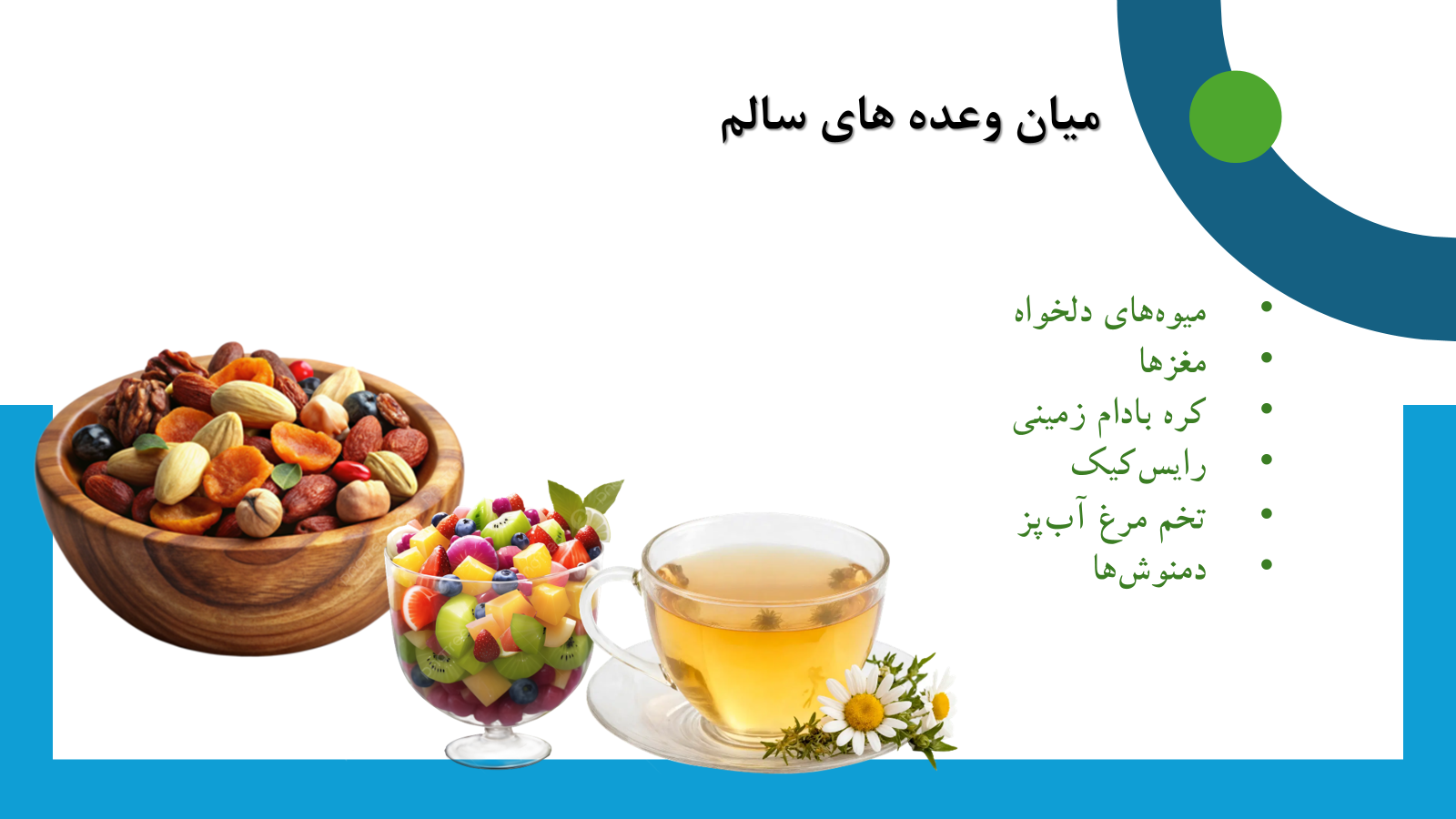 در محیط کار اداری، انتخاب های تغذیه ای سالم برای حفظ انرژی، تمرکز و سلامت ضروری است. توصیه می شود از غذاهای سنگین و چرب پرهیز کنید و به جای آن، غذاهای حاوی پروتئین، کربوهیدرات های پیچیده و سبزیجات مصرف کنید. میان وعده های سالم مانند میوه، آجیل، یا ماست، می توانند کمک کننده باشند. همچنین، نوشیدن آب کافی برای حفظ رطوبت بدن ضروری است.