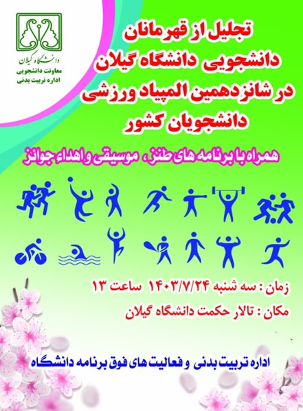 از تعداد  22 نفر دانشجو و مربی و سرپرست خانم  برای کسب رتبه 9 دانشگاه گیلان با 61 امتیاز  از بین 75 دانشگاه شرکت کننده و تعداد 12  دانشجو و مربی وسرپرست آقا برای کسب رتبه 16 دانشگاه گیلان با  59 امتیاز در بین 105 دانشگاه شرکت کننده  در روز سه شنبه 24 مهر ماه تقدیر به عمل آمد.