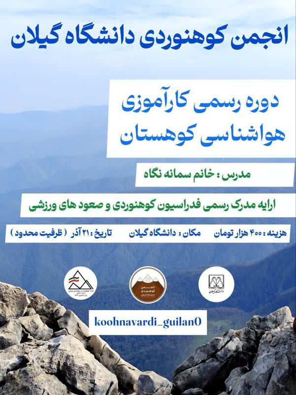 ثبتنام سه دوره آموزشی آغاز شد! بهمنظور ارتقای مهارتهای فردی و کوهنوردی، ثبتنام سه دوره زیر شروع شده است: