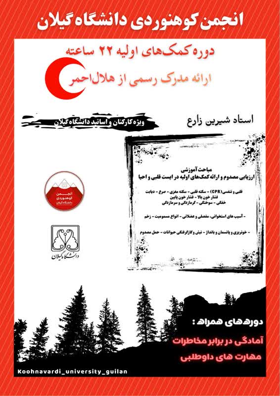 زمان برگزاری : 14 و 21 آذر ماه مکان برگزاری : دانشگاه گیلان شماره تماس : آقای گلزار 09113365729- داخلی 6305