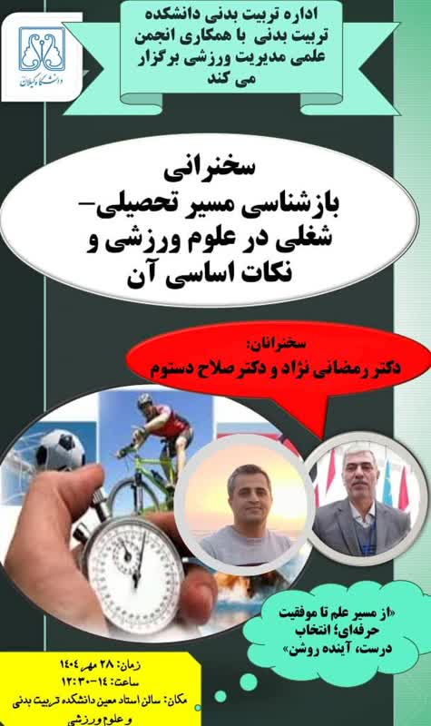 موضوع سخنرانی : بازشناسی مسیر تحصیلی - شغلی در علوم ورزشی و نکات اساسی آن