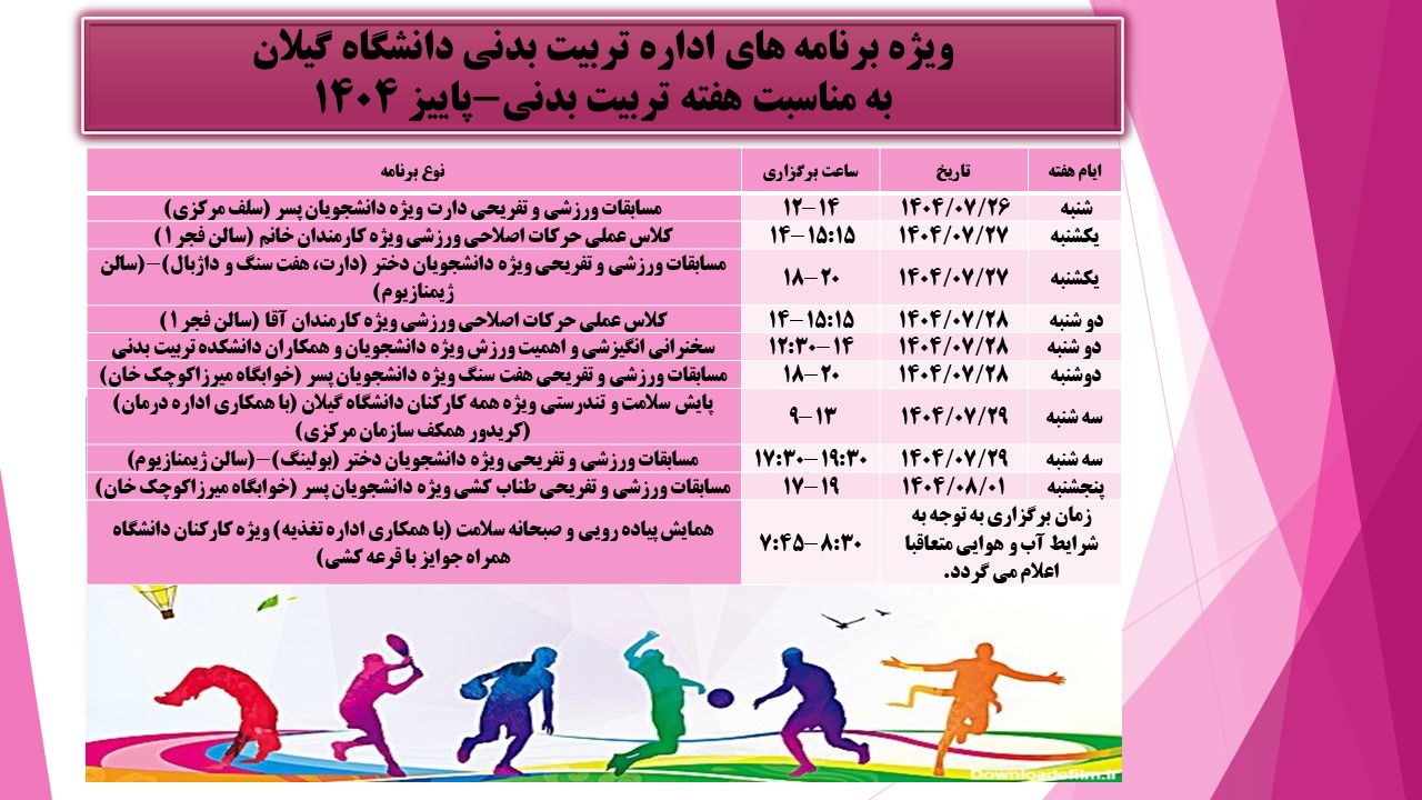 لیست برنامه های هفته تربیت بدنی مهر 1404